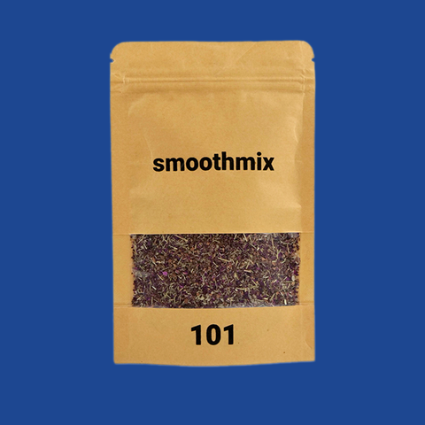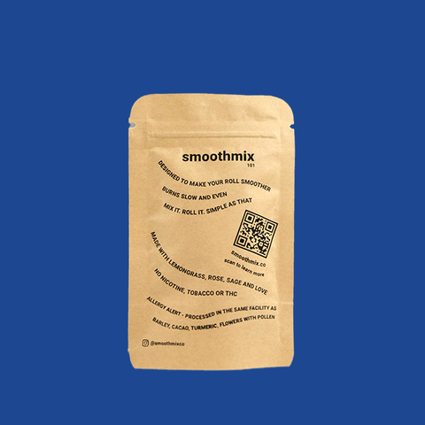 Smoothmix 101 is a herbal rolling blend that makes your roll smoother and last longer. It's made with sage, lemongrass, rose and tons of love. We recommend mixing a 20% ratio to start with and then increasing as per your liking!