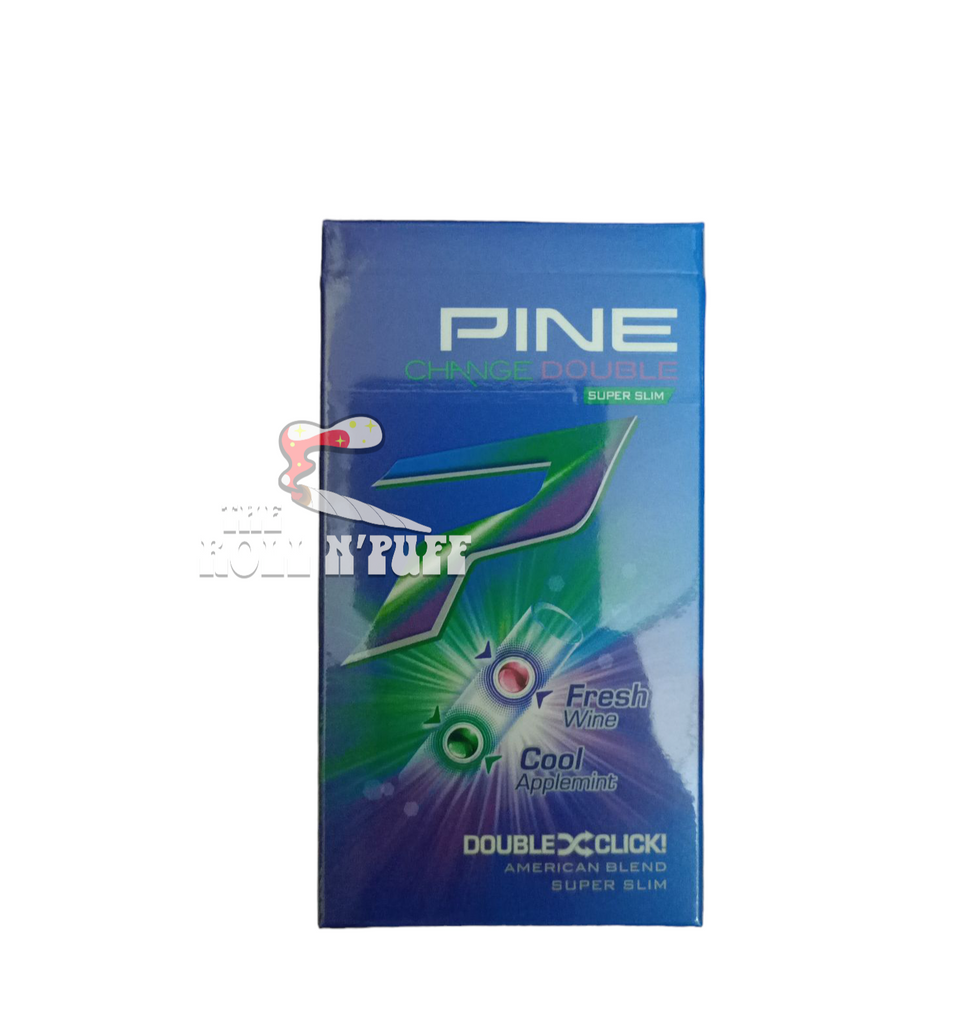 Try the Pine Double Change Cool Applemint & Fresh Wine, featuring the Pine Double Change Superslim cigarette. With a unique blend of fresh apple and cool mint flavors, this cigarette will satisfy your cravings and leave you feeling refreshed. Enjoy the slim design for a smoother smoking experience.