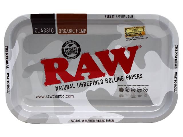 The RAW Classic Arctic Camo Metal Rolling Tray features a 20mm deep dish design that stops your surfaces from becoming a mess and at the same time helps conserve waste by collecting all of the crumbs that fall when you roll.