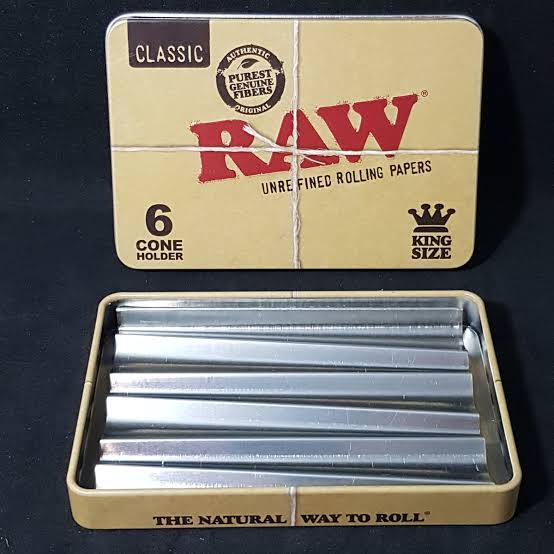 Don't you hate it when you have to take pre rolls to a out or to a party and they get squished in your purse or pocket. This is where the RAW Metal Tin Case for 6 King size pre rolled cones comes in play. Holds more than enough pre rolls for the day!